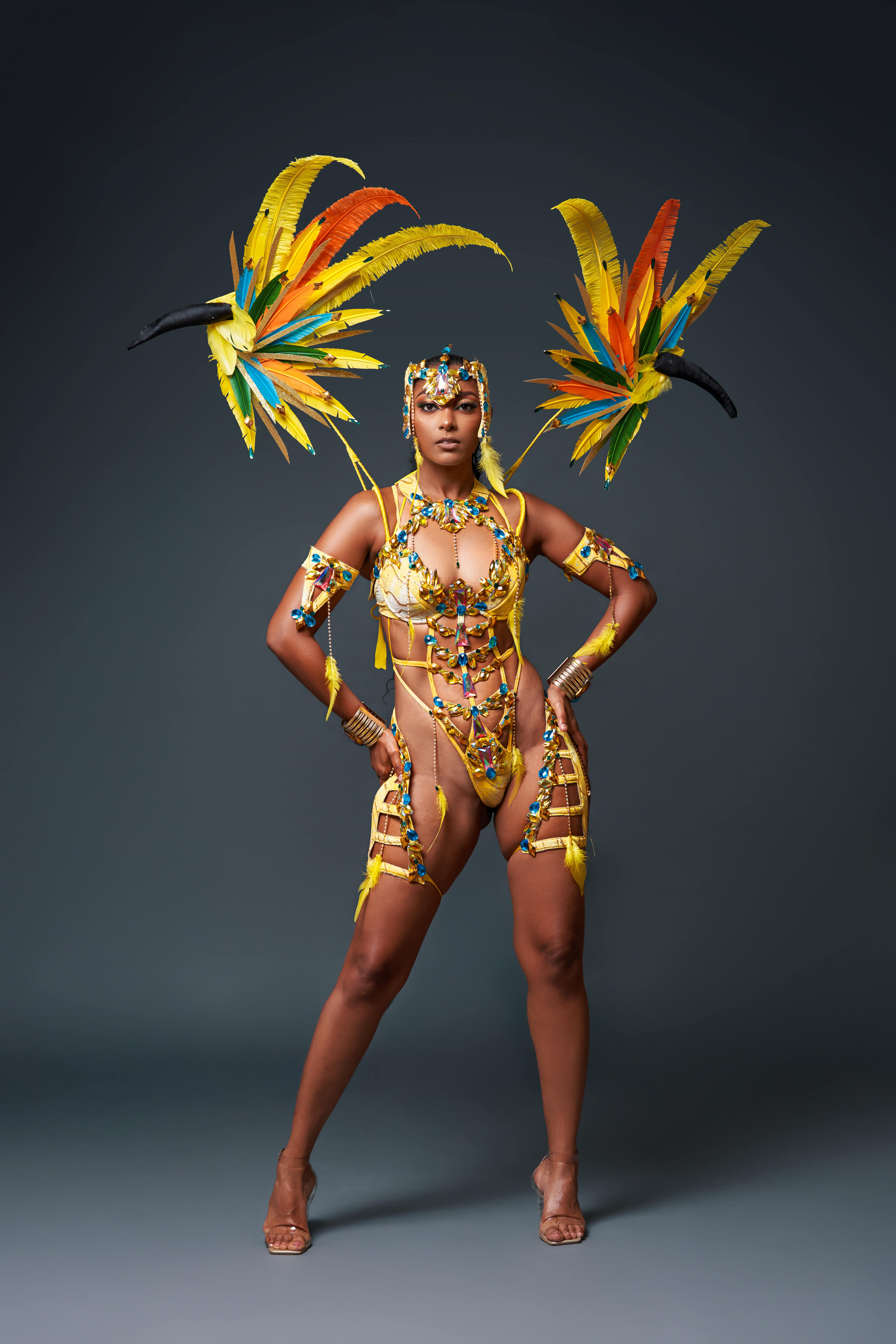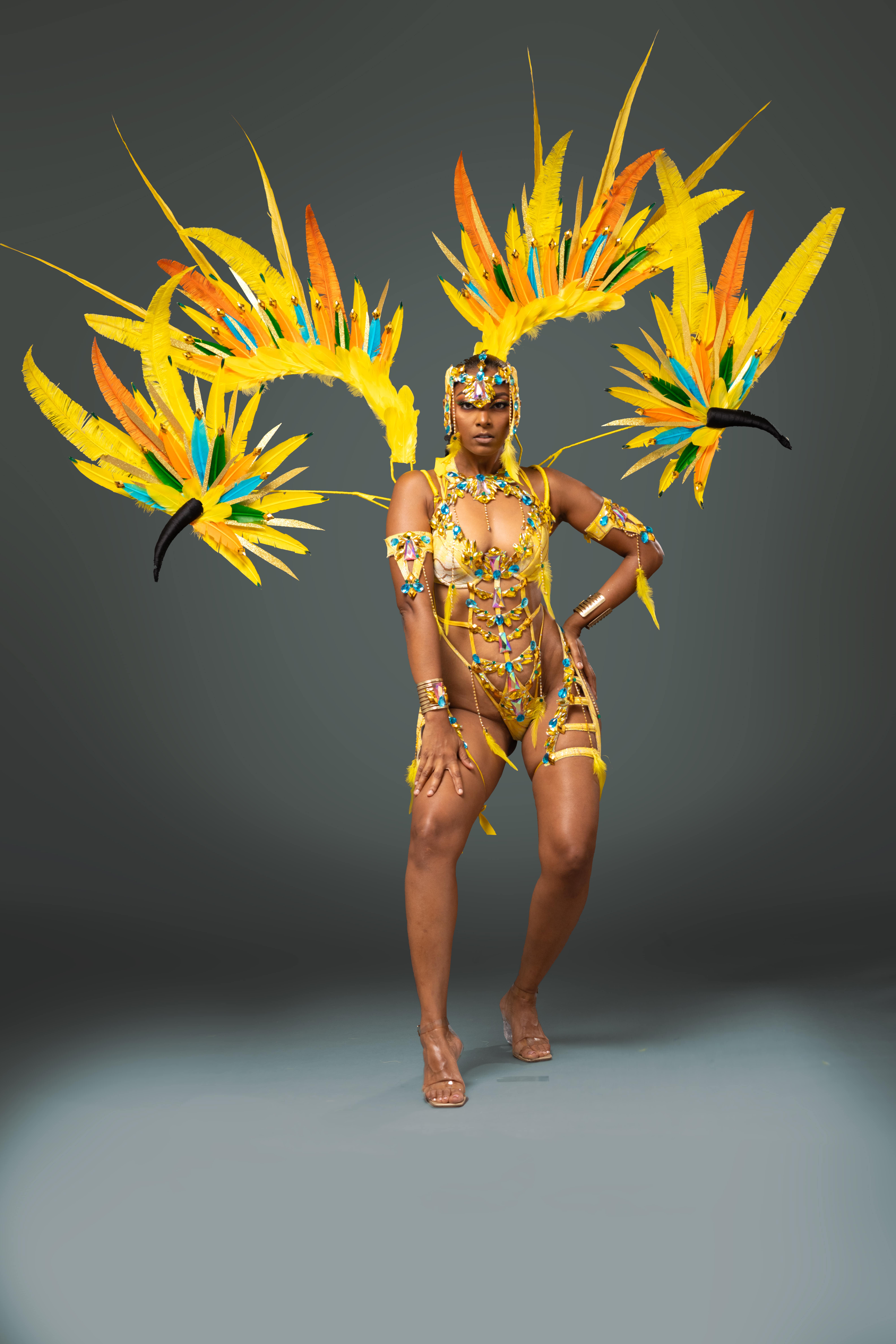 Behold the tropical royalty whose golden feathers and bold blue wings command the jungle, and now, the streets of Tobago. Meet "Macaw", the feathered marvel of Jade Monkey’s electrifying 2025 presentation: "Let’s Fly Tobago."